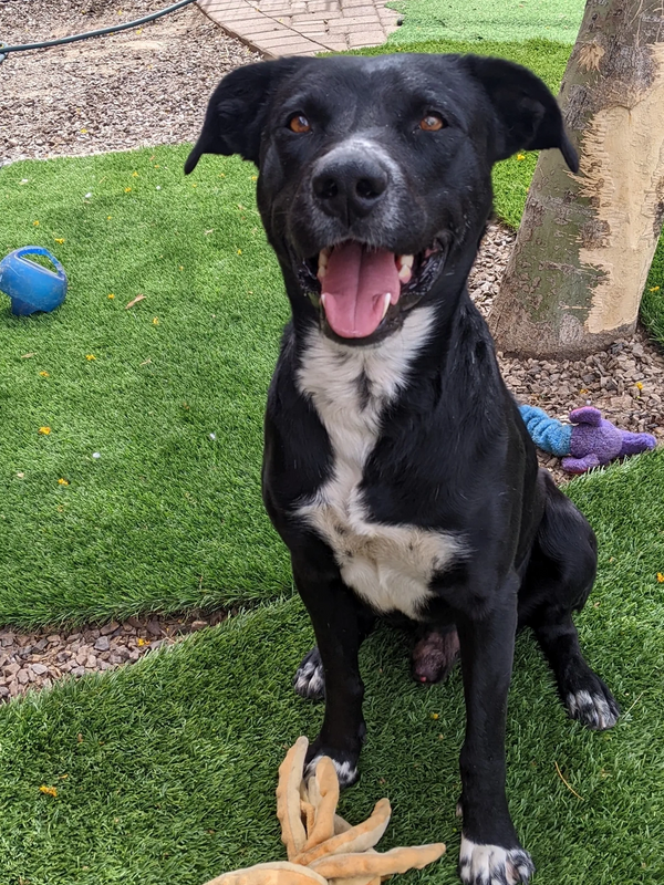He knows sit, stay, shake, and down, and does wonderfully with other dogs. He absolutely loves butt rubs and playing tug-of-war with his favorite rope.